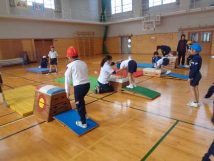 富山市スポーツ協会指導員の方をお招きし、跳び箱教室が行われました。初めに3・4年生は、踏み切りの仕方や手のつきかたや力の入れ方などを教えていただき。きれいな姿勢で開脚跳びや台上前転ができる子供たちが増えました。