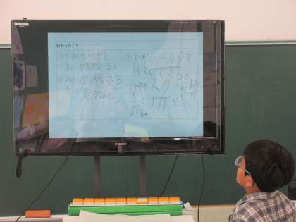 友達からの質問に答えたり、感想を聞いたりしました。とてもいきいきしながら発表していました。