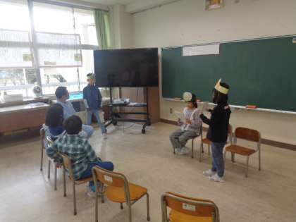 1年生や職員の方々を招待して、「お手紙」の音読劇を行いました。学習したことを生かし、クループごとに練習を積み重ねて迎えた発表会。登場人物になりきった音読は、とても素敵でした。