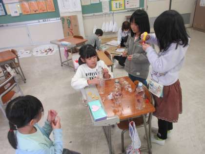 明日はいよいよ、お客さん(2・3年生)を招いて「あきの おもちゃまつり」を開催します。実際に作ったおもちゃを試したり、完成に向けて作業に励んだりしました。招待動画も撮影し、子供たちは、少し緊張している様子でした。明日が楽しみです。