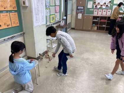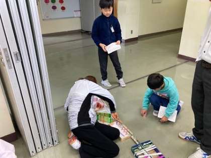 わくわくタイムに2・3年生を招いて「あきのおもちゃまつり」を開催しました。各コーナーに分かれて、おもちゃを紹介しました。楽しんでもらえるように工夫したおもちゃでたくさん遊んでもらいました。