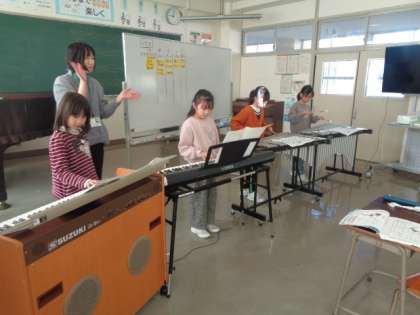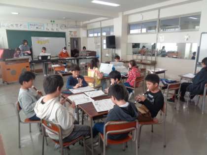 初めて全員で合わせて「パフ」を合奏しました。周りの楽器に惑わされることなく、リズムよく演奏することができました。