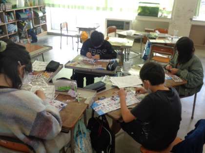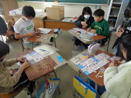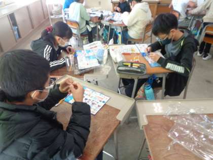日本の工業生産の学習のまとめとして、プラモデル作りを体験しています。全員が全く同じ製品であり、昔と比べ、品質がとても向上していることや、消費者のニーズに合う商品に進化していることなど、「物つくり体験」を通して、日本の工業生産の技術の高さに感心していました。