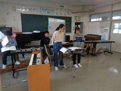 卒業式で歌うことにしている曲の練習に取り組んでいます。まずは、旋律やリズムなどをつかむことからです。