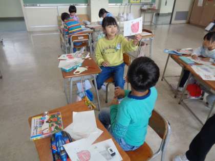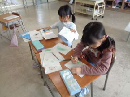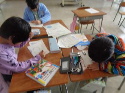 授業で学習したことを生かして、お店屋さん合う言葉を見付け品物を書いています。
