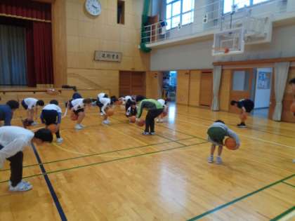 2月に予定されているミニバスケットボール交流会に向けて、参加予定の5・6年男女の子供たちが集まり、一緒に練習やゲームを通して汗を流しました。互いに競い合い、励まし合いながら運動を楽しんでほしいものです。