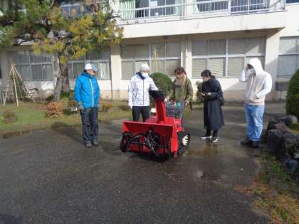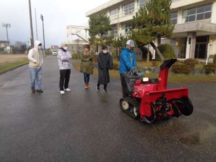 今年度の除雪に備え、PTAの方々が除雪機使用講習会を行いました。ご多用の中、また時より冷たい風が吹く寒さの中、ありがとうございました。