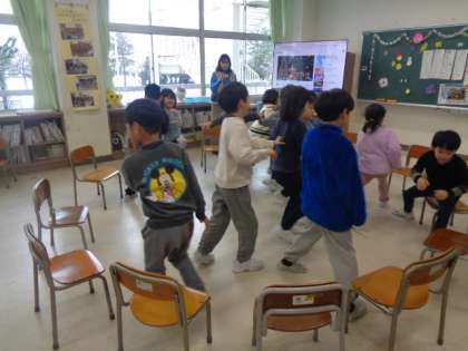 お楽しみ会は2部構成。体育館での鬼ごっこや教室でのフルーツバスケットなどで大いに盛り上がりました。