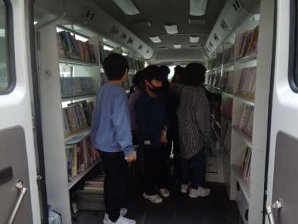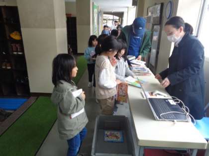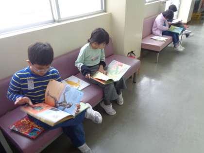 2学期最後の巡回図書となりました。肌寒い気温の中、夢中になって好きな本を読む子供たちです。