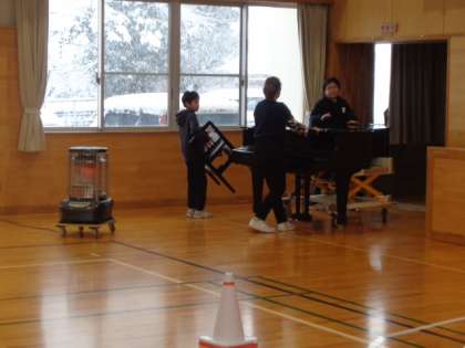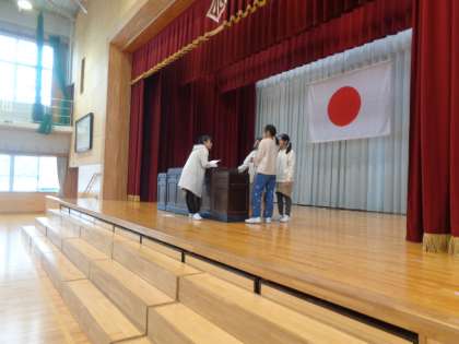 式後の後片付けは、6年生の担当。当たり前のように自主的に行動しています。