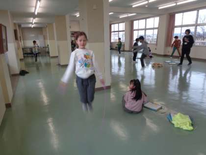 縄跳びカードに書いてある目標となる回数達成に向けて、練習中です。