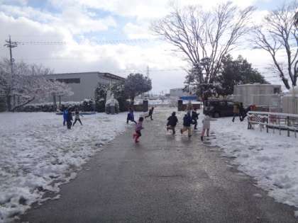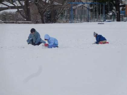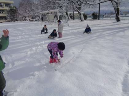 久しぶりに積もった雪に、大はしゃぎ。グラウンドへ出て、雪合戦や雪だるまつくりなどで、雪ならではの遊びに夢中になりました。