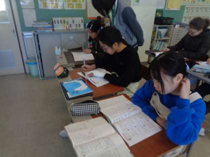 算数は、まとめの学習です。自分の課題に合わせて、一人で、あるいは友達と教え合いながら学習を進めていきます。