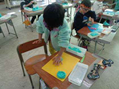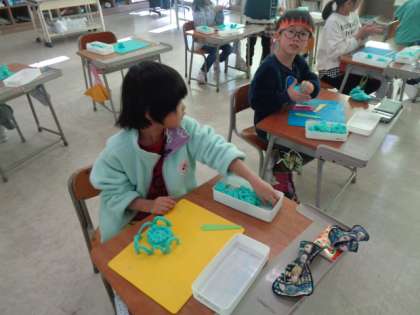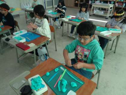 粘土で自分の好きなものを作っています。発想がどんどん広がって行きます。