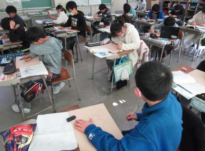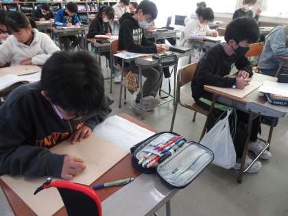 1月17日(水)5年 図画工作科「版に下描きをしよう。」