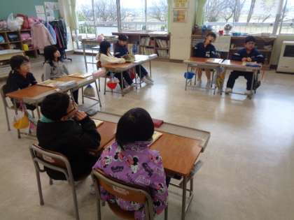 「うそをつくこと」について、隊形を「コの字」にして話し合っています。