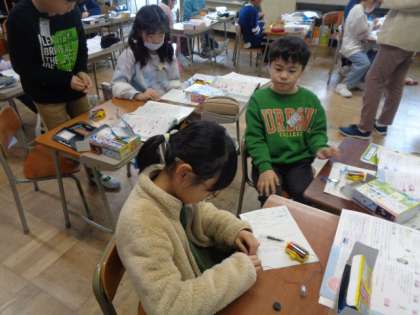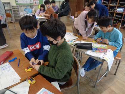 「電気を通すものは何か」いろいろなものを回路につなげて調べています。