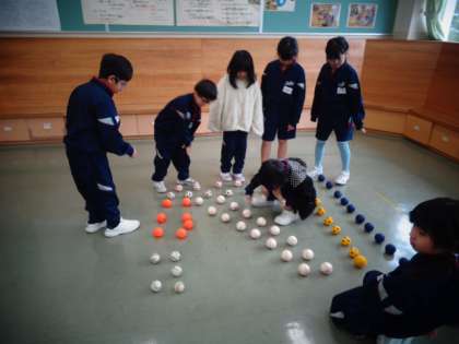 「ボールや帽子は全部でいつくありかな」みんなで協力し合い、1のまとまりを生かしながら数を数えていました。