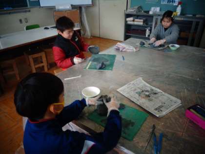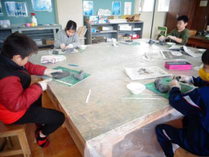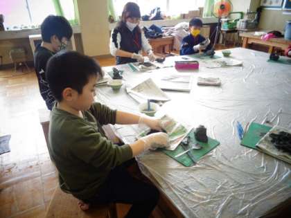 粘土の柔らかさを味わいながら、自分オリジナルの器作りに挑戦しています。作業の没頭する姿は、まるで陶芸家のようです。