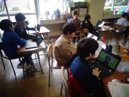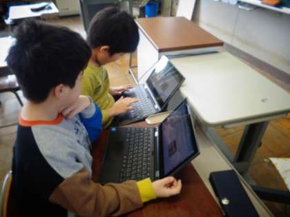 「6年生のいいところは」今度は、これまで世話になった6年生の認定証に取り組んでいます。