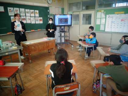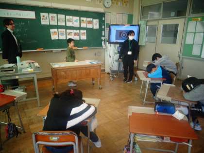 ALTの先生の発音をよく聞いて、学校にある場所を英語で確かめています。