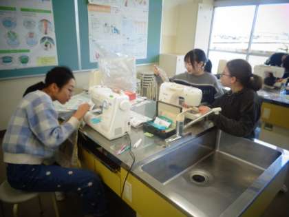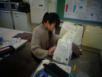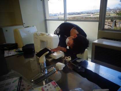 ミシンを上手に扱いながら、マクラ作りに取り組んでいます。