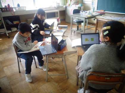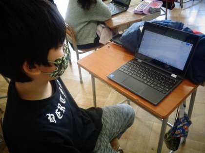 「もしも災害にあったらどうするか」自分が体験したことや資料で調べたことをもとに、まとめる内容を考えています。