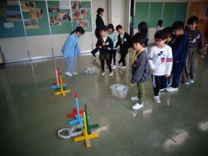 来年度、八幡小学校に入学予定の子供を招き、2回目の体験学会を行いました。前回の反省や成功を生かして、準備・運営を行った1年生。今回もお兄さんお姉さんとして頼もしい姿がたくさん見られました。