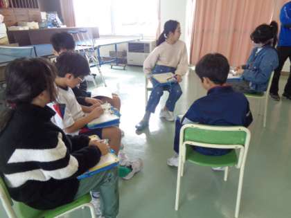 道徳科の授業で4・5・6年生が集まり、「やさしさ」について話し合いました。学級とは異なる価値の意見や多様な考え方を興味深く聴き、自分の考えを見つめ直していました。