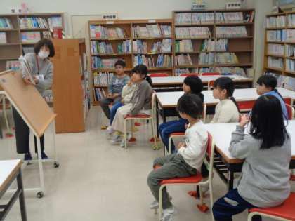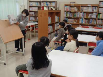 毎学期、子供たちが楽しみにしている司書さんによる読み聞かせ。もう、お話に夢中です。