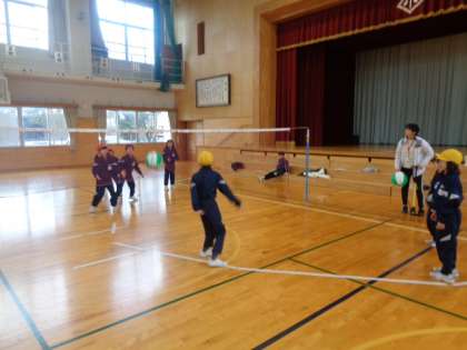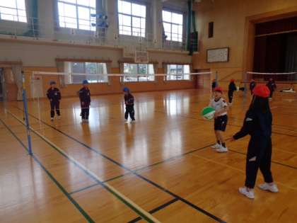 ネットはさんでのパス。見方には受け取りやすいパスをしながら、ボールをつなげていました。