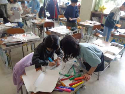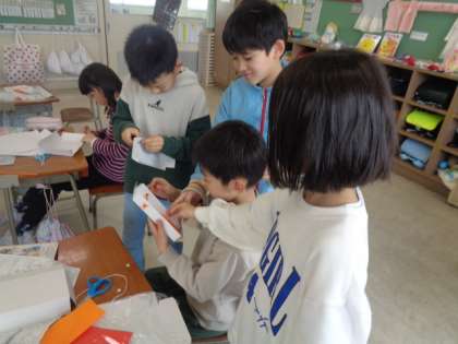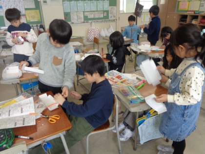 箱の形を利用して、すてきな町作りに挑戦。どんな町にするか、イメージが膨らんでいきます。