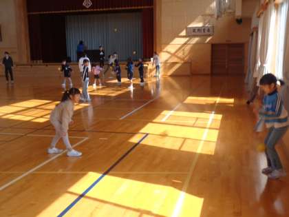 今回は、運動委員会で考えた「大谷選手を目指そう」第2弾。下学年の子供たちが参加しました。「ボールを床にたたきつけるように投げる。子供たちは、楽しみながら投げ方のこつを学んでいました。