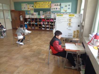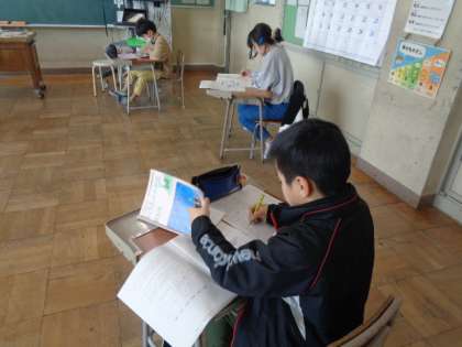 4年の学習の復習となる問題に取り組んでいます。分からないところは教科書や資料に立ち戻りながら考えています。