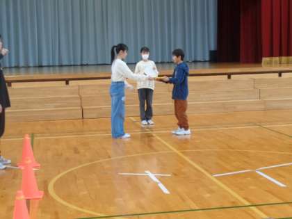 6年生の代表から5年生の代表へ、委員会ファイルと「秀峰会の鍵」が手渡されました。6年生を中心に、児童会スローガンの実現にむけて、自主的に様々活動に取り組みました。この伝統は、いつまでも続いてほしいものです。