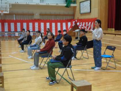 練習後の振り返りも行いました。呼びかけや歌の時の自分の姿を振り返っています。