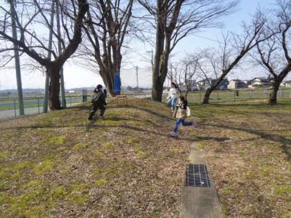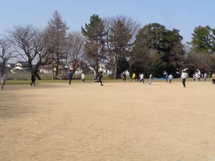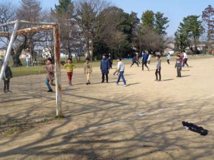 陽気に誘われ、グラウンドは子供たちの元気な姿にいっぱい。学年問わず、仲良く遊んでいます。