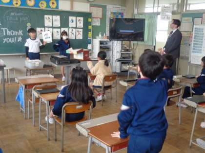 ALTの先生と最後の学習です。隠されてたパネルは何か、英語で応えるゲームで盛り上がっています。
