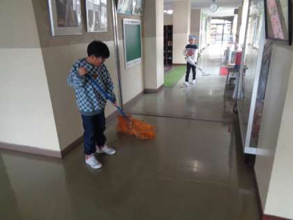 6年生が卒業し、掃除の役割もとても増えましたが、4・5年生の新なかよし班リーダーを中心に協力し合ってきれいにしています。