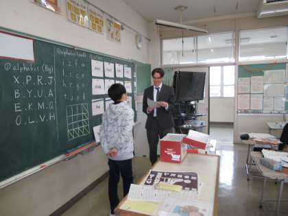 今日は、ALTのダニエル先生と最後の学習です。最後は、じゃんけんゲームやビンゴゲームを楽しみました。
