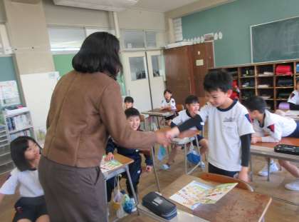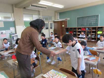 始めはALTから声をかけていましたが、いつの間にか3年生の方から挨拶を始めていました。話したくてしかたがなかったんでしょうね。