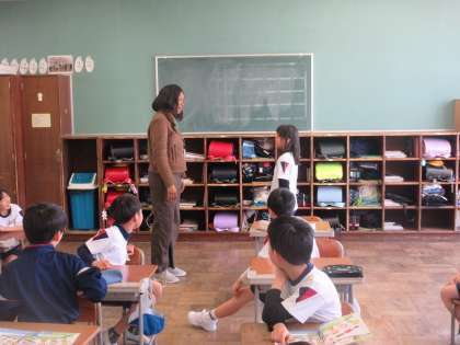 今日は、初めての外国語活動でした。子供たちは、始まる前から楽しみな様子でした。