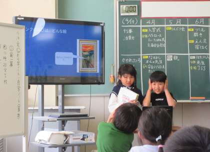 「学ぼう絵画会社」の子供たちが有名絵画について紹介しました。今回紹介した絵画は、「モナ・リザ」です。