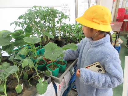 今日は2回目のまちたんけんに行きました。「なのはな農協」へ行き、畑に植える野菜の苗も買いました。たくさんの苗があり、どれにしようか迷っている様子でしたが、自分で苗を選び、レジでお金を払いました。