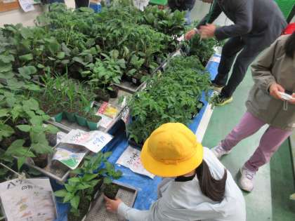 「きゅうりは塩漬けにして食べたいな」「ピーマンが好きだから、ピーマンにしたよ」「ミニトマト、たくさんなるといいな」など、これから野菜を育てることをとても楽しみにしている様子でした。