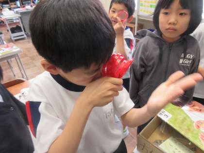 また、虫眼鏡も使い始めました。虫眼鏡を重ねて物を見ると、