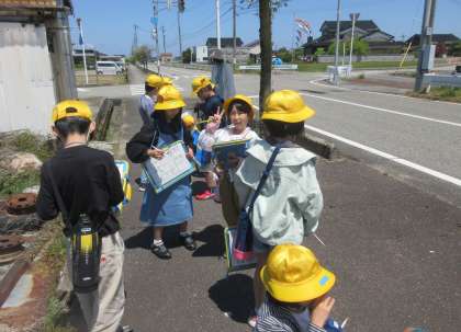 社会科では、学校の周りに何があるのかを見つけるたり、道路の様子を見たりするために町探検をしました。今回は、「公共施設」という言葉を事前に学習したので、小学校の近くにある地区センターを目指しました。