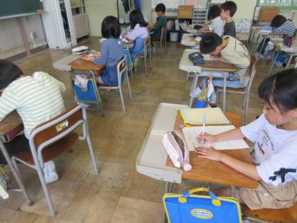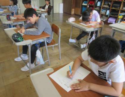 明日は、いよいよ運動会です。子どもたちは、各種目でのめあてを設定したり、気合いのこもった一言を考えました。