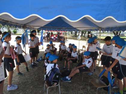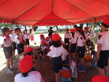 運動会に向けて一生懸命取り組み、みんなをまとめてくれた6年生に向けて、感謝を伝えたいという思いから、4・5年生で6年生にエールを送りました。「6年生のいいところは、ミスをしても優しいところ」「おもしろくてはげましてくれるところ」「一人一人にしっかりアドバイスをしてくださるところ」など伝えました。