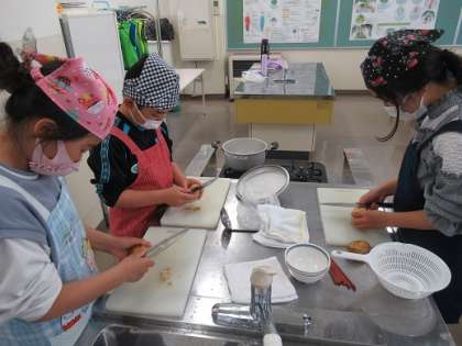 調理実習第3弾は、ゆでじゃがいも作りでした。じゃがいもの皮を包丁でむくグループとピーラーを使ってむくグループに分かれて行いました。竹ぐしをさして、かたさを確かめながら調理し、ちょうどよいやわらかさのゆでじゃがいが完成しました。